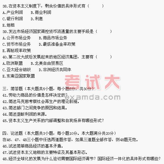 全国2003年10月高等教育自学考试马克思主义政治经济学原理试题